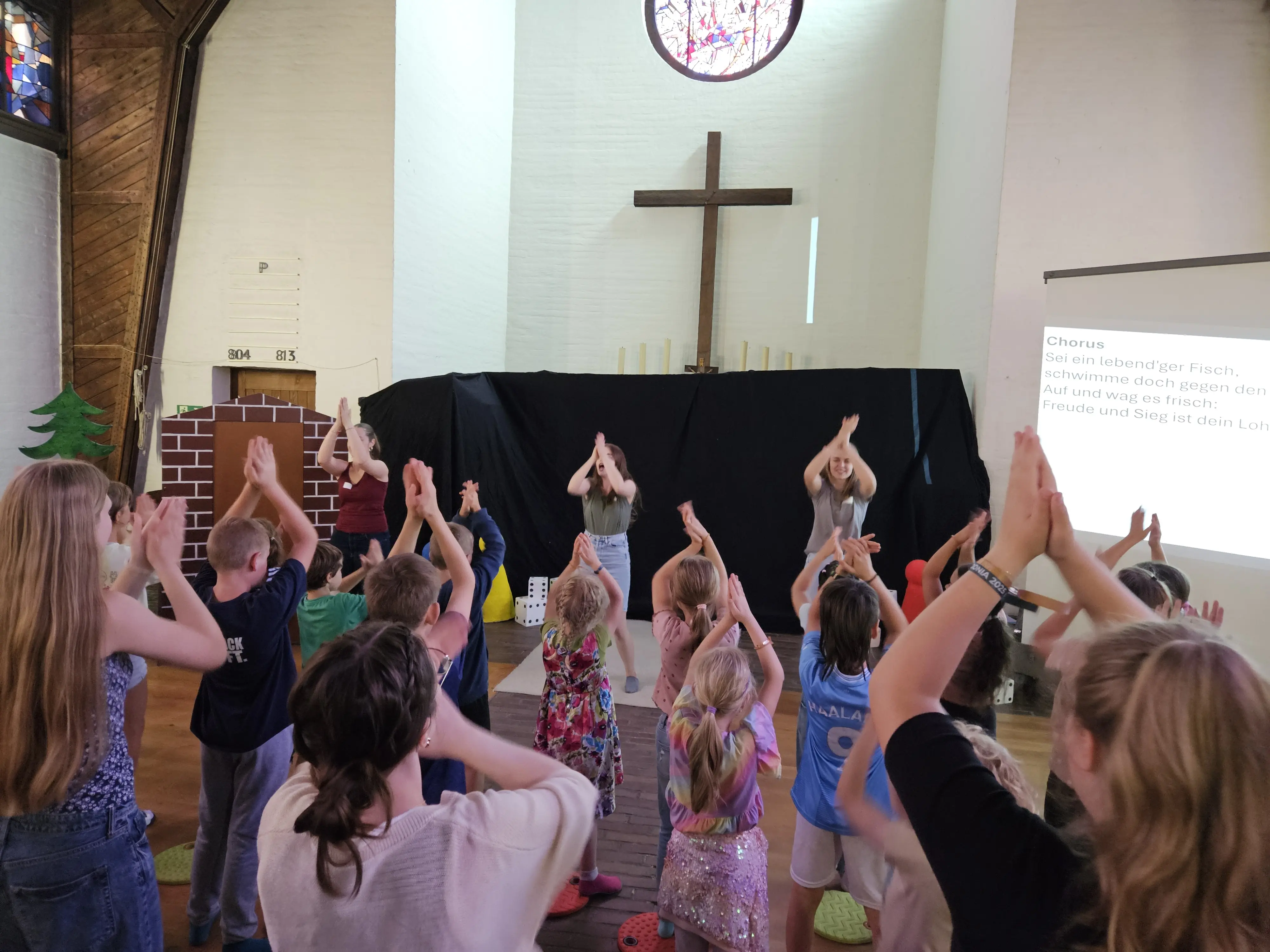 In der ersten Woche der Sommerferien (7. - 11. Juli) trafen sich täglich knapp 60 junge Menschen in der Lukaskirche. Viele Jugendliche und junge Erwachsene hatten großen Spaß daran für die Kinder ein tolles Programm vorzubereiten. Gemeinsam wurde viel gesungen, getanzt, gespielt, gebastelt und gelacht. Mit kleinen Theaterstücken konnten verschiedene Bibelgeschichten erlebt werden und in Kleingruppen haben wir Zeit gehabt, um wichtige Themen anschließend zu vertiefen.